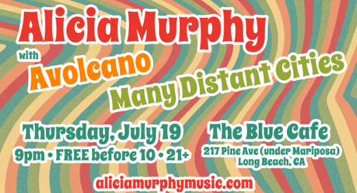 Read More ›Blue Cafe Alicia Murphy Residency w/ Many Distant Cities & Avolcano 9-12 pm 21+ The Blue Cafe 217 Pine Ave, Long Beach, CA 90802 Google map link Facebook event: facebook.com/events/283175755123352/